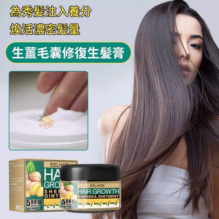 EELHOE生薑毛囊修復生髮膏最新理療配方,可以防脫生髮、固發養分、控油、止屑止癢,用來做為按摩頭皮修復神器的重要成分,具有促進頭髮生長、養髮護髮的作用。